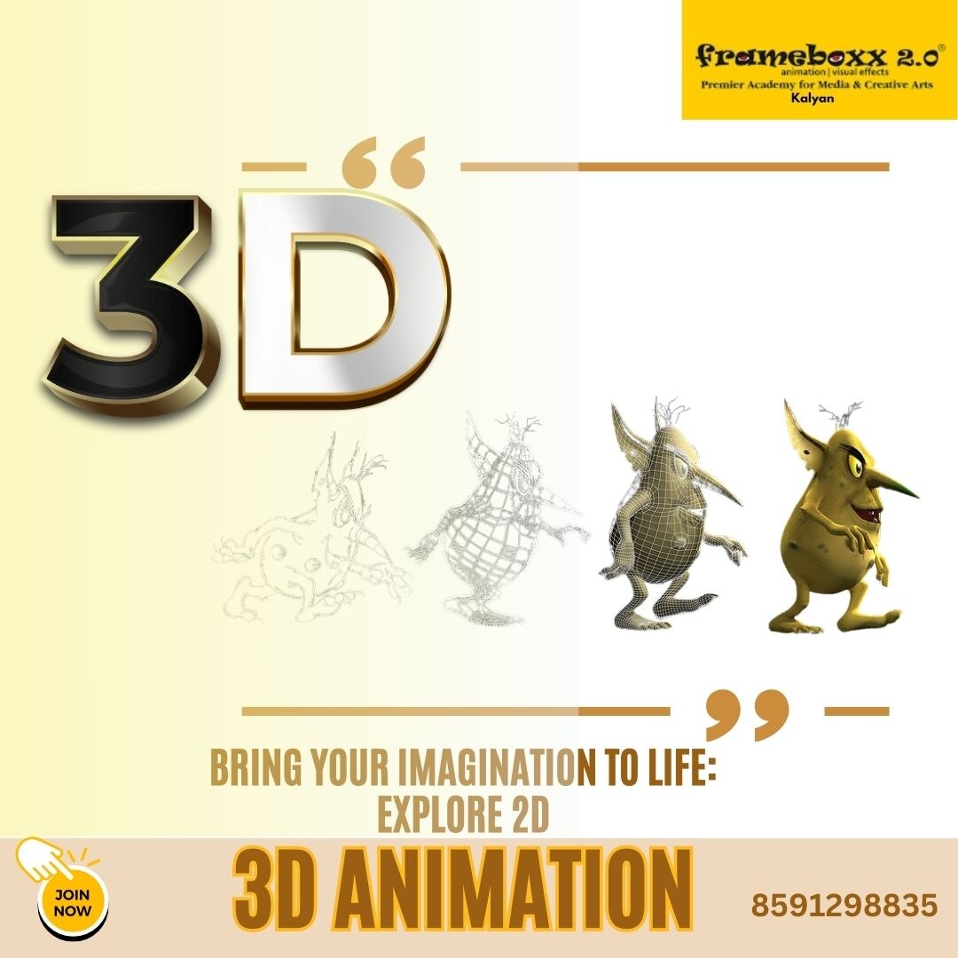 3d Animation Course in Kalyan "Unlock your creative potential with our 3D Animation Course, designed to teach you the skills needed to bring characters and environments to life. Learn industry-standard software and advanced techniques from experienced professionals. Gain hands-on experience through practical projects, and build a compelling portfolio. Our course prepares you for exciting careers in film, gaming, and digital media, offering personalized guidance and a comprehensive curriculum. Excel in the dynamic field of 3D animation and transform your imagination into captivating visual stories."